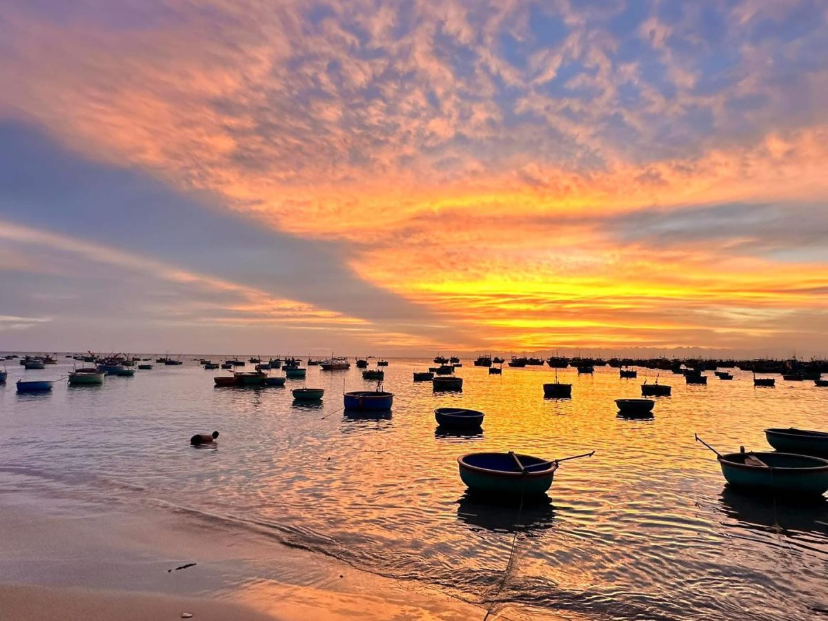 Từ sớm tinh mơ, biển Phan Thiết đã bừng lên sức sống. Những chiếc thuyền thúng trở về sau phiên chợ sớm, tiếng nói cười rộn rã, hòa cùng làn khói bếp từ các xóm chài nhỏ. Tất cả tạo nên bức tranh bình yên của một vùng duyên hải tràn đầy năng lượng.